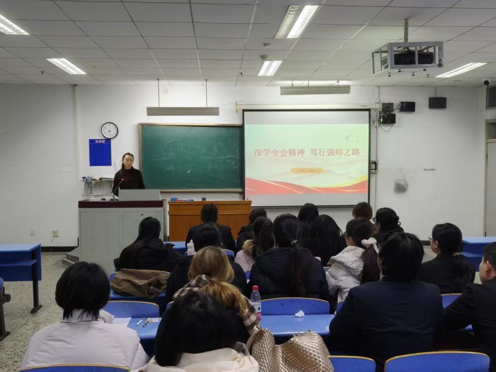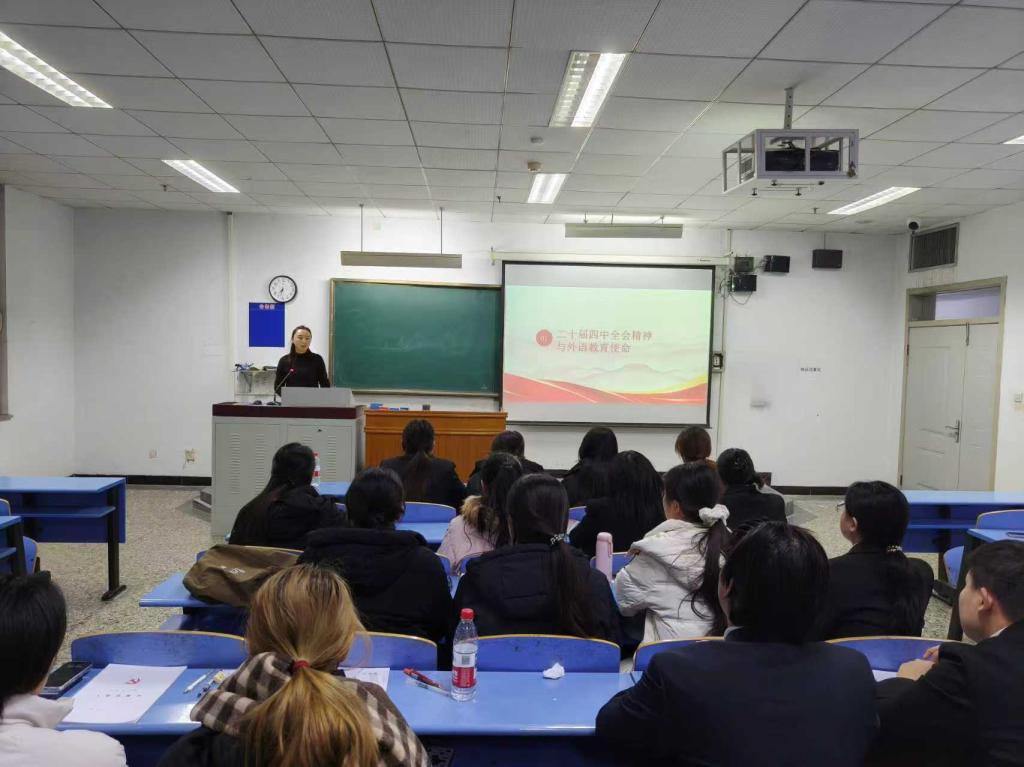 为深入学习宣传贯彻党的二十届四中全会精神及习近平总书记在全会上的重要讲话精神,切实把全体师生的思想和行动统一到全会精神上来,近日,外国语学院党总支副书记曹丽君面向全体学生开展“深学全会精神 笃行强师之路”主题宣讲,为外院学子解读全会精神核心要义,指引专业成长与职业发展方向。