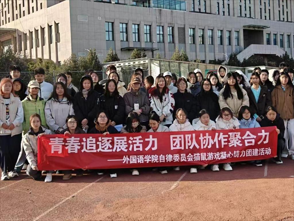 为强化团队协作能力,提升集体凝聚力,丰富成员课余生活,11月30日,外国语学院自律委员会和就业创业中心在南苑操场开展“青春聚力·猫鼠趣战焕新团建”主题团队建设活动,自律委员会及就业创业中心全体成员参与其中,在趣味互动中增进情谊,凝聚奋进力量。