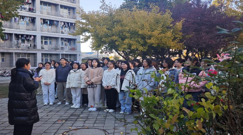 2025年11 月 1日,外国语学院联合资源管理系在宿舍开展消防安全应急演练,200余名学生参与,通过实战模拟提升火灾应急避险与自救能力。